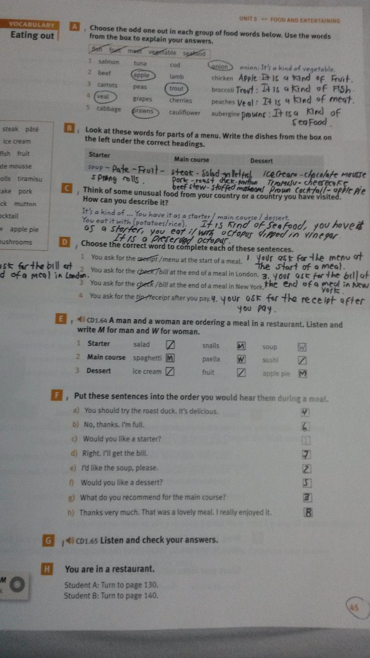 · 1.1.3 Now open your Market Leader book on page 45 and develop exercises A to G on eating out matters.