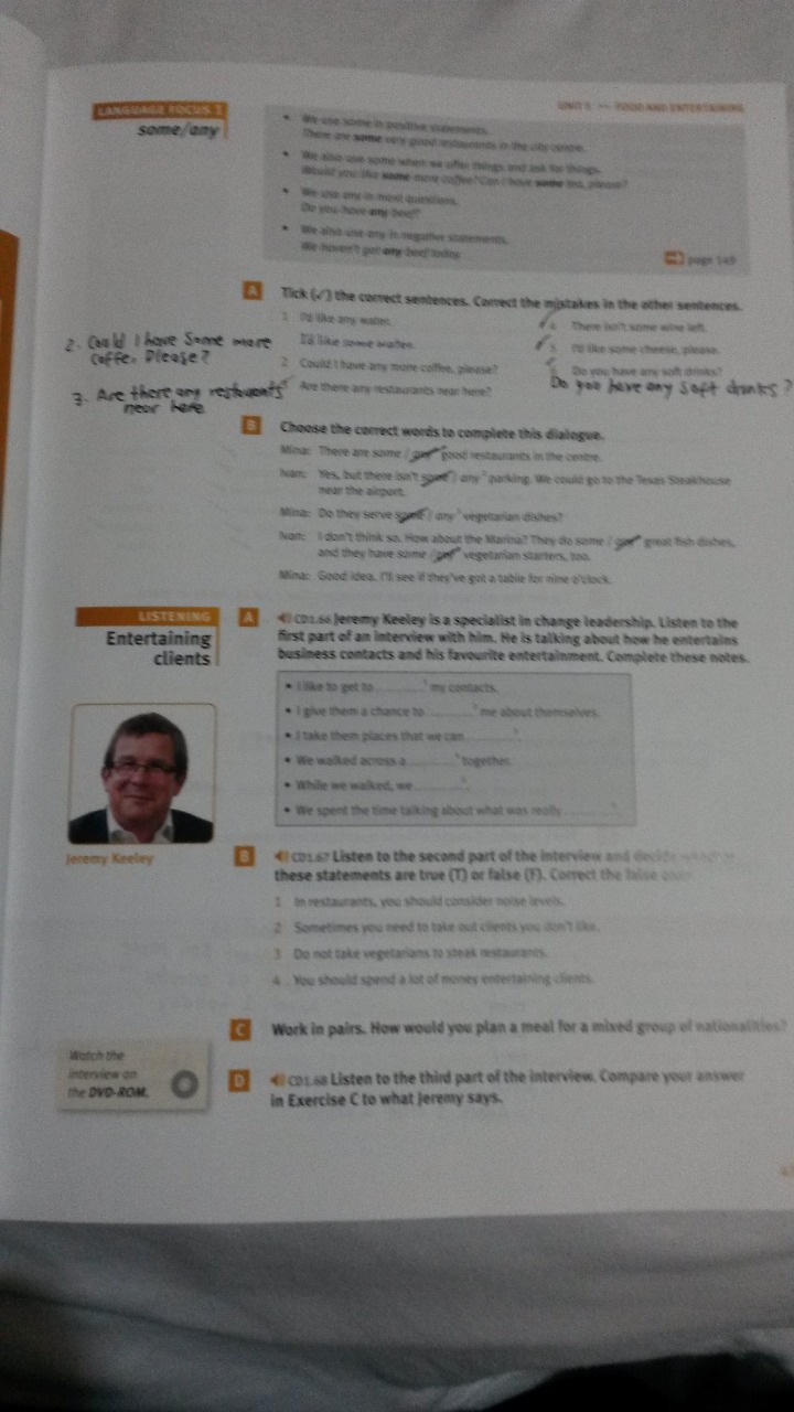 - 1.2.4 Now go over exercises A and B on page 47 of your Market Leader book about some/any.