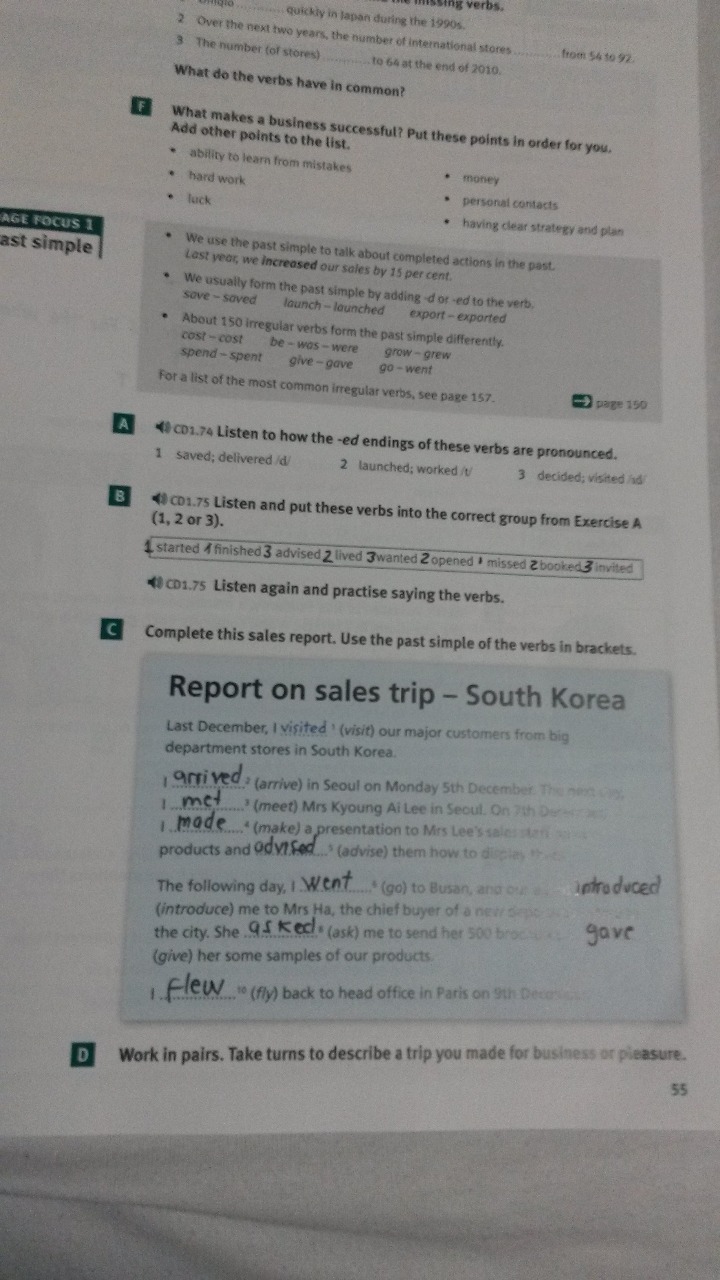 - 1.2.2 Open your Market Leader book on pages 38 and 39: Develop exercises A to F of Language Focus 1.